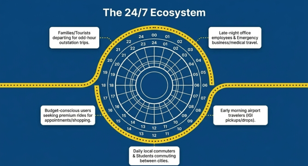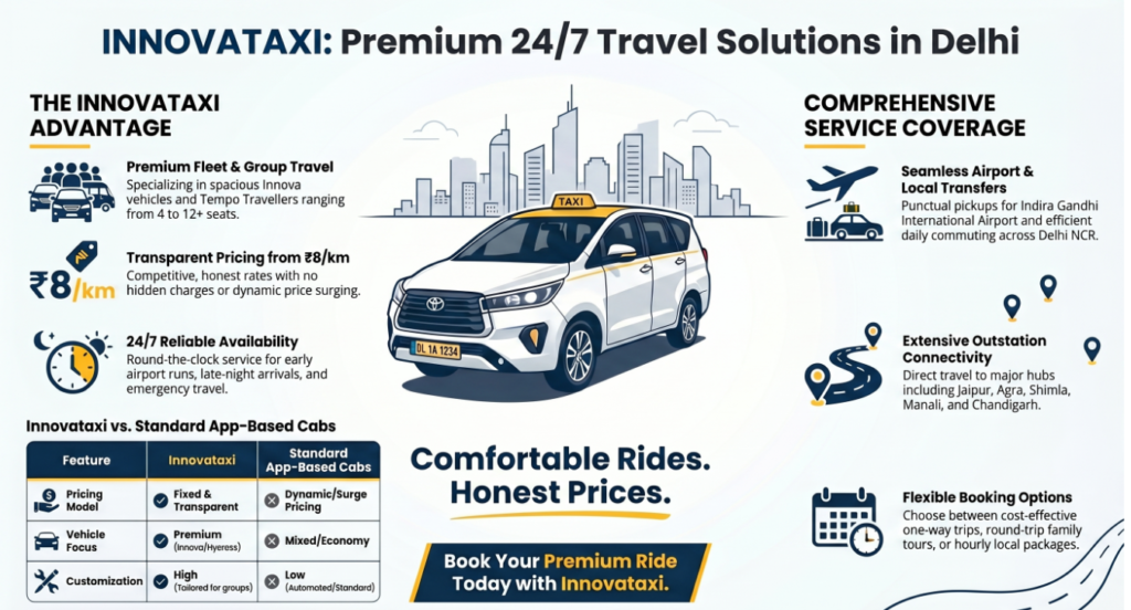 A reliable 24/7 taxi service in Delhi gives you peace of mind and convenience. Whether it’s an airport ride or a late-night trip, you can travel safely without delays.